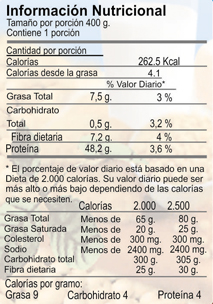 Proteína de soya seleccionada, cloruro de magnesio, agua, sal. Alimento Listo Para Su Consumo